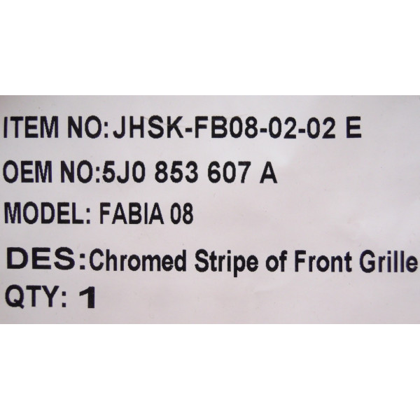 Lišta přední masky/ mřížky Škoda Fabia II Roomster 5J0 853 607 A, chrom maska grilu roštu 691505-1 Fabie 2, 3423A710